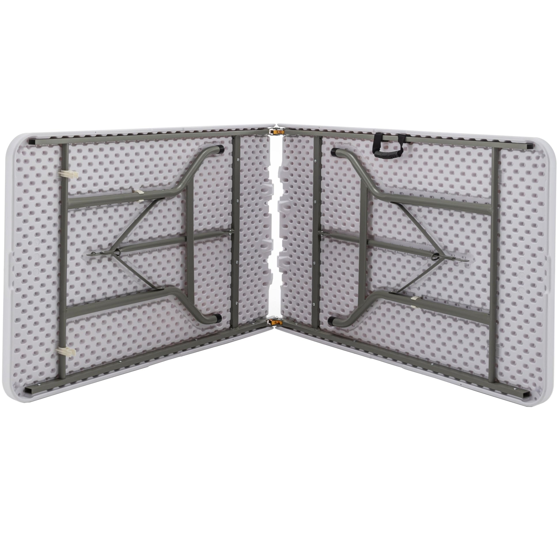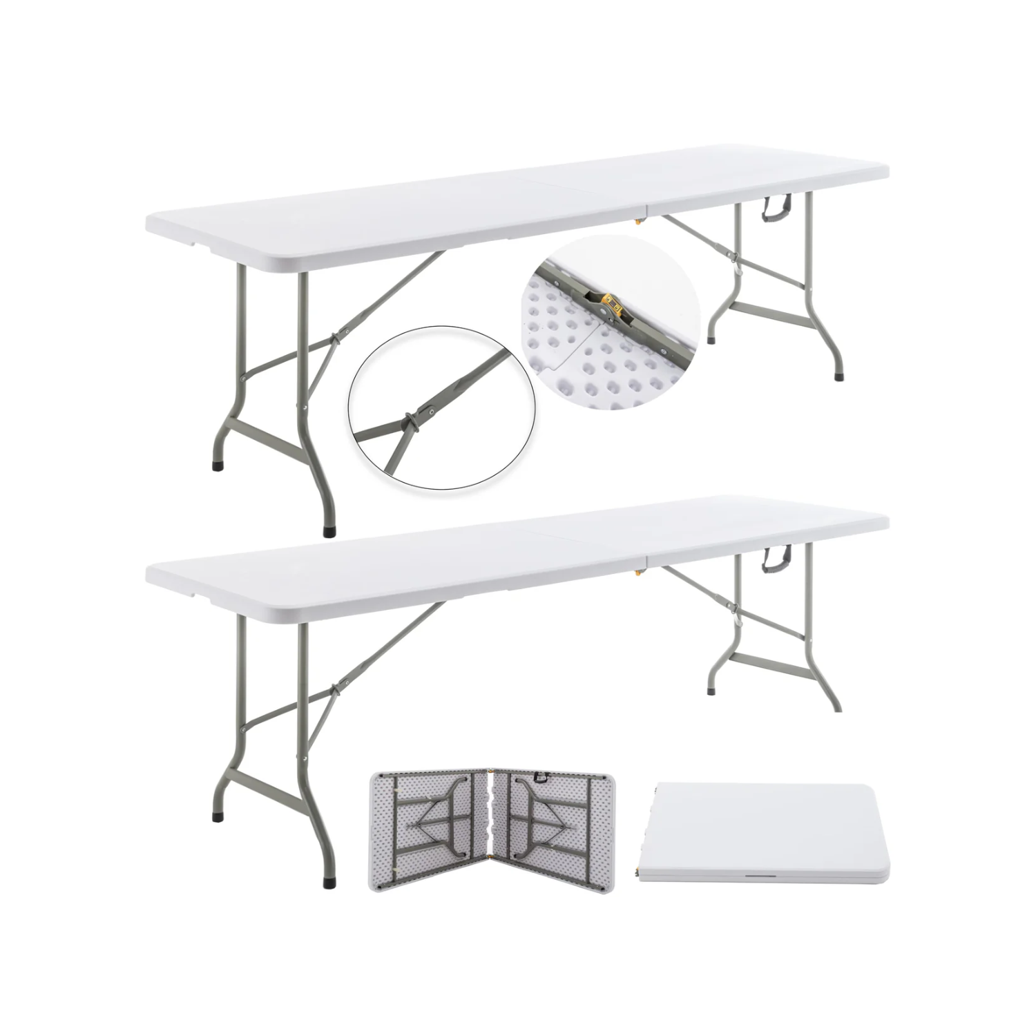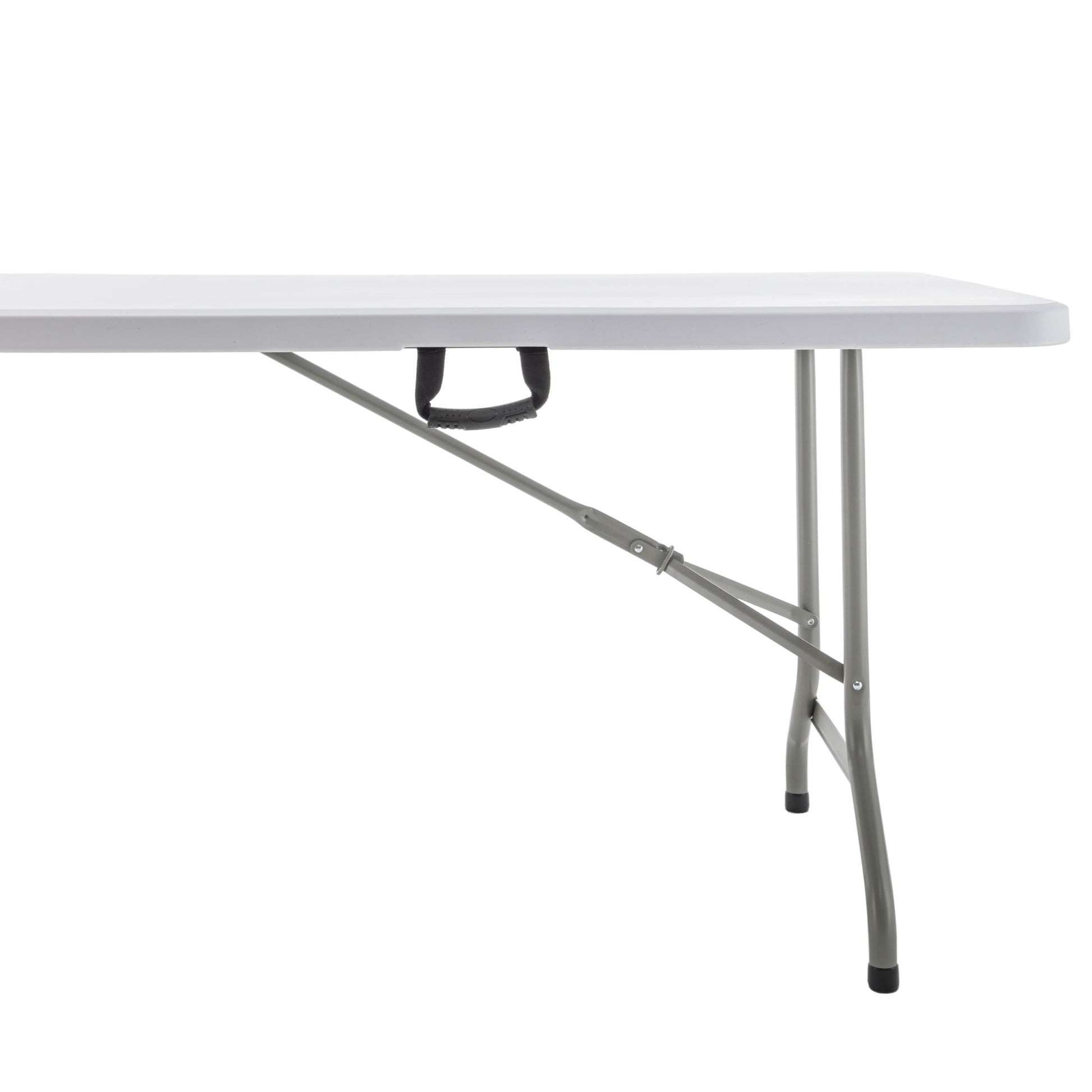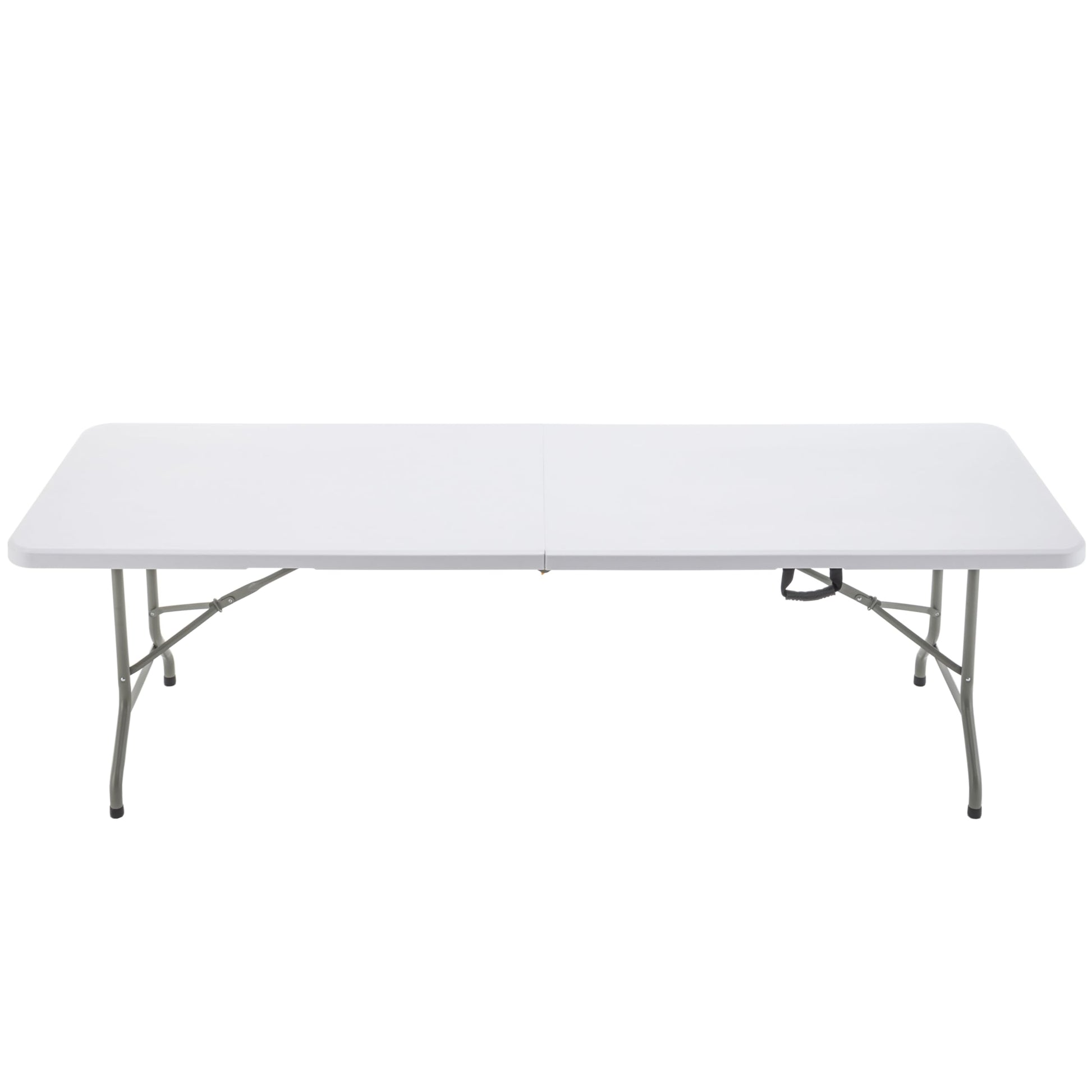 COMMERCIAL GRADE: BTExpert 8-Foot Long Plastic Folding Table - the perfect addition to any reception, classroom, party, show or conference. This sturdy table measures 30" W x 96"L x 29"H and has a weight capacity of 330 lbs static weight & 100 Ibs dynamic weight. Customize to use as storage by putting lone drawers under the table between the legs. Stable enough to put heavy things sitting on top like laptop, printer, speaker, griddle, or make it a buffet table for food. SUPER STURDY & DURABLE: Tabletop made from durable 45mm thick plastic, easy to clean and maintain. Easy to set up and folds down legs neatly under the table for easy storage and transport, making it a convenient choice for those with limited space. Push up angled braces towards the table top corner to fold. Multipurpose Utility Table: Whether you're hosting a meeting, giving a presentation, or just making it a work table, this has you covered. Its sleek and stylish and its practical features make it a must-have for any workspace. Perfect for seating upto 10. Multiuse table for entrance, patio, garden, tent, porch, plantation or as console table. Smart Choice & Flexibility. Easy to open, fold, store and carry. Dual support braces, powder coated steel frame with 1.0mm thickness and locking legs mechanism. Its non-slip plastic feet cap gives stability & anti-scratch protection. Fully Assembled: In addition to its stylish design and practical features, the seminar table is also built to last. Its sturdy construction ensures that it can withstand daily use and maintain its pristine appearance for years to come. Compact storage: Simply fold the legs up and store the table in a closet, on the go, under a bed, or in any other convenient location. Additionally, each foot has a rubber cap that improves traction on slippery surfaces while shielding floors from dents and scratches. They come totally assembled. Straight out of the box and ready to be used. Folded in half dimensions: 48”*30”*3.6" 18.5lbs