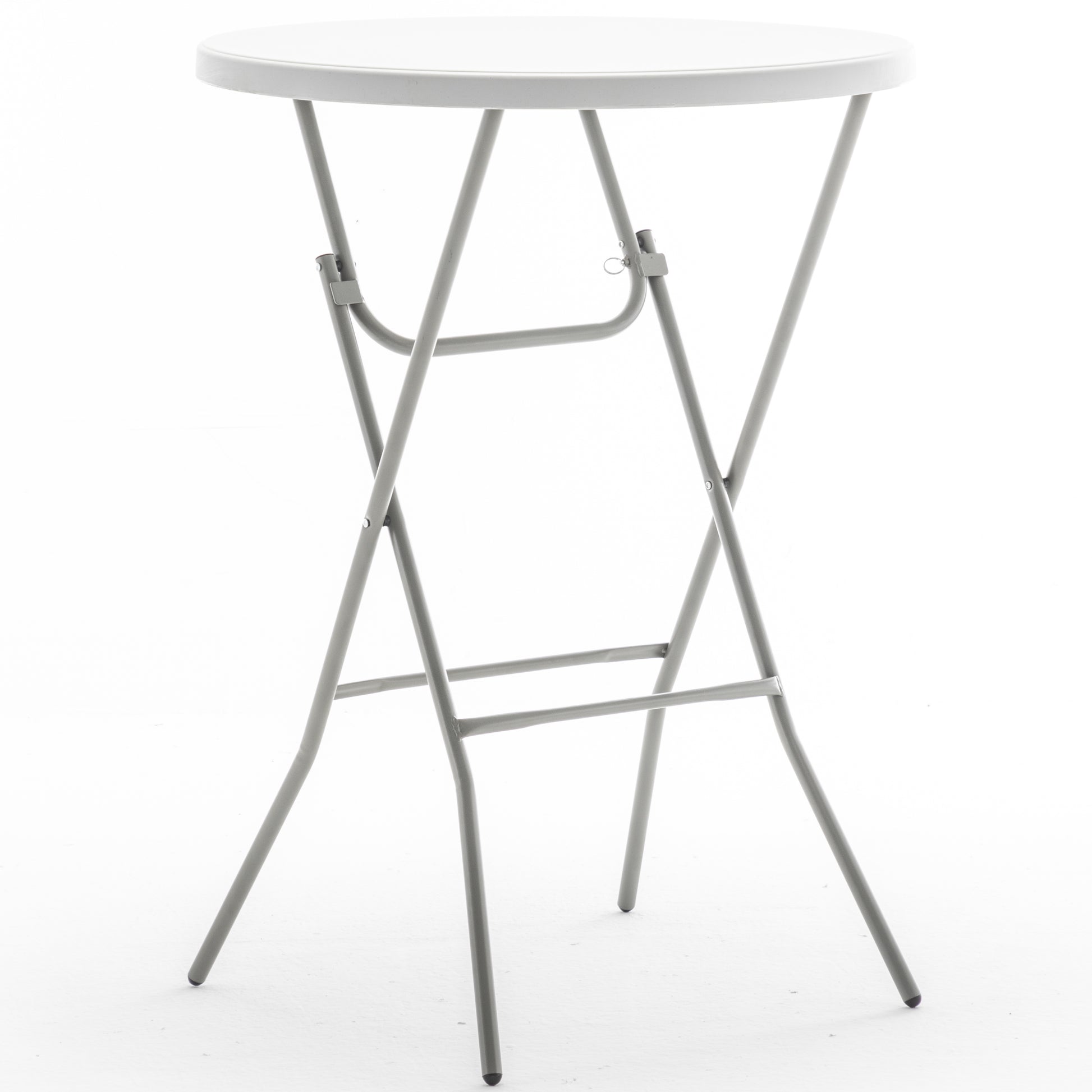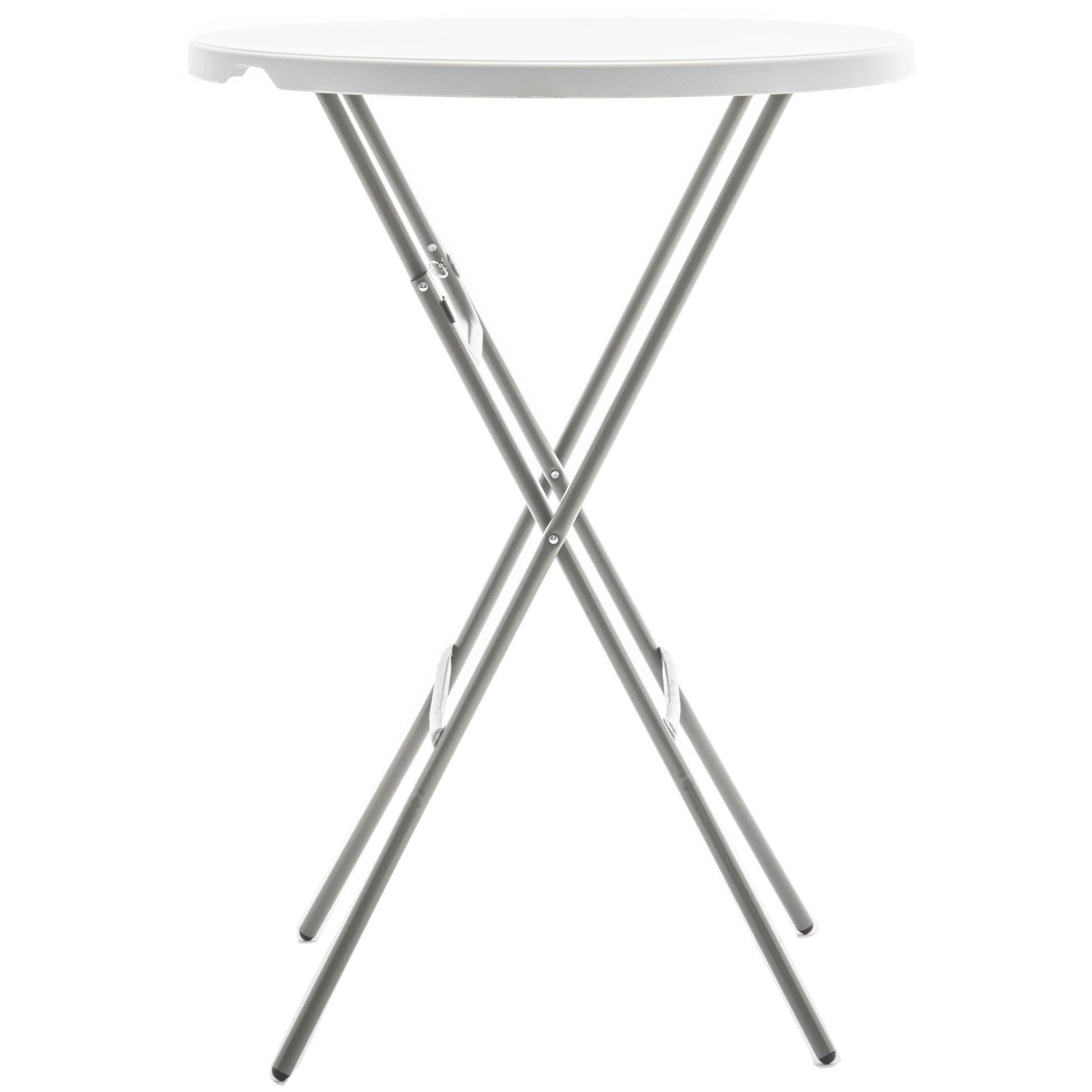 COMMERCIAL GRADE: Indoor Outdoor belly bars folding table with 32 32-inch round top perfect for any Hotel, party or socialization, whether you're hosting a backyard cocktail barbecue, or simply need extra seating at your next gathering. Stable enough to put heavy things sitting on top. 2.6-Foot Round Tabletop made from 45mm thick durable plastic this Bar Height Plastic table can seat up to 2-4 adults. The 43.3 inch height design is perfect for standing gatherings or for use as a high-top table.