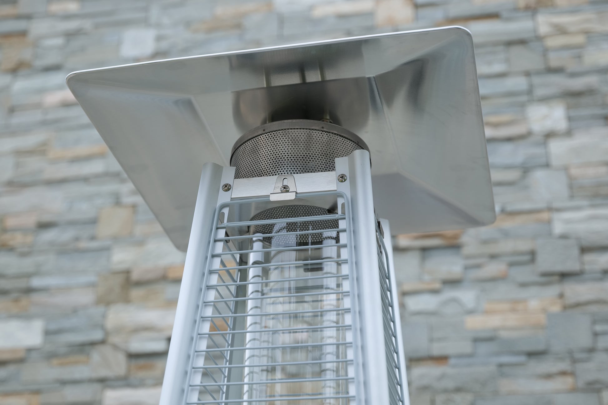 - Signature BTExpert pyramid styling – Striking pyramid tower with metal panels and a clear glass tube turns the heater into a modern design feature by day and a dramatic glowing centerpiece by night, enhancing any outdoor décor.
