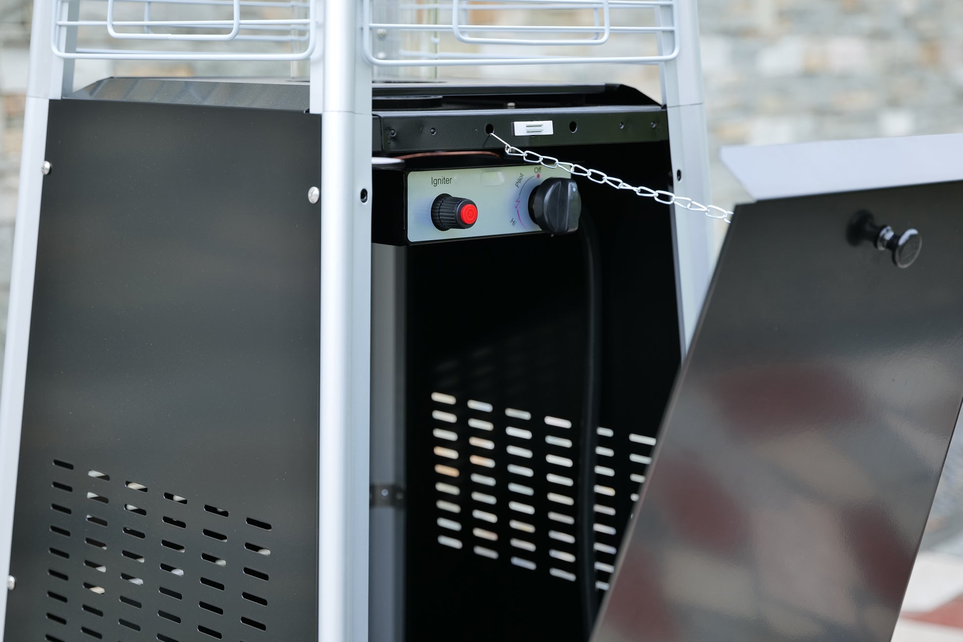 - Easy to move and secure – Built‑in wheels make repositioning the heater simple, while anchor points let you fix it more firmly to help prevent tipping. The base provides straightforward access for placing and replacing a standard 20 lb propane tank (not included).
