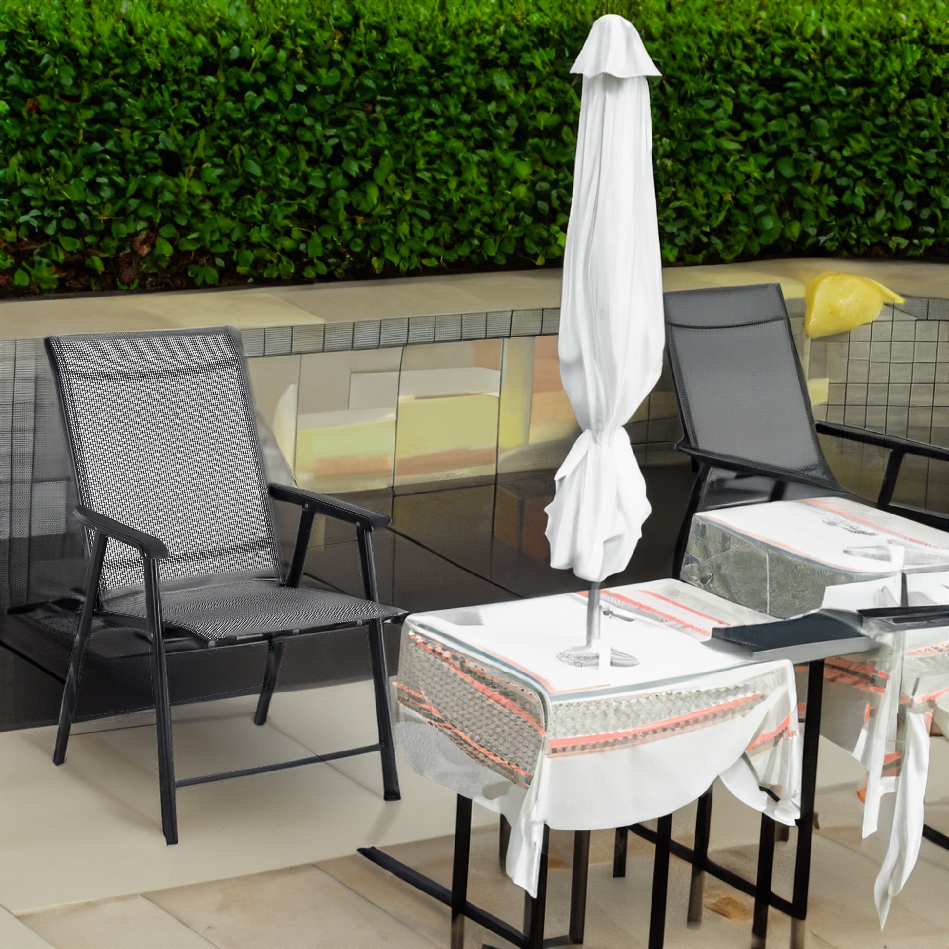 Patio Chair: Lightweight Heavy Duty Material Folding Dining Chair fold, store & save space, when not in use. Perfectly made for indoor & outdoor use, trips, events, poolside , sporting, camping, garden, patio, porch deck, dining, lunch or other activities Heavy duty metal frame with special coating is rust resistant & weather resistant. Breathable Textiline fabric used in sling chair provide cool environment and is quick to dry. Chairs comes with towel stand on the back and footrest to relax your feet. Garden Chair: Non-slip Plastic feet pads provide stability and prevent from floor damages. comfortable seating experience with a large weight capacity of 275lb ArmChair: Foldable Picnic Chair comes with arms for hours of enjoyment during tailgate games. Multipurpose Indoor Outdoor Chair: These multi use outdoor folding chairs are great for bistros, lawns, gardens, pools, patios, beaches, yards, sunrooms, and dining rooms. Outdoor Folding Chair is ideal as a fishing chair on pier, beach, lake or pond. The party chairs comes with Shinny glossy metal frame. Outdoor Portable Chair: Use and carry portable chair anywhere or ocassions. Impress neighbours with this High-end balcony chair. Others can spot High quality Chair in your lawn or yard with its durable look and sturdy material. Fold to make stackable Chair: Dimensions: 25"D x 23.25"W x 37.5"H. Fold Size:23"W X 7"L x 36"H. Weight capacity up to 250 lbs. Seat: 18.25"W x 17"D x Seat Height from floor 17.5"H, Back Seat Size: 18.25"W x 24"H, Arm 24"H from floor & 8"H from seat; No Assembly Required