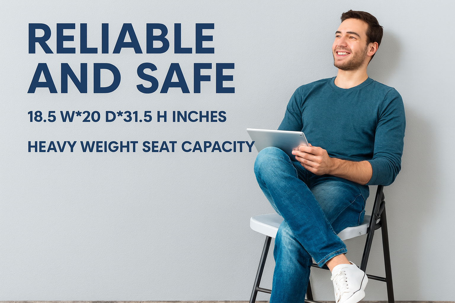 LIGHTWEIGHT & COMMERCIAL GRADE: BTExpert White Plastic Folding Chair - a stylish seating solution for any occasion. The backrest and seat are made of PP material, which is UV stable, resistant to aging, ensuring that this chair will stay looking fresh and new for years to come. Whether you need extra seating for a party, a comfortable place to sit during a sporting event, or a convenient option for outdoor gatherings, the chair is a reliable choice & easy to carry. SUPER STURDY & DURABLE: With a metal tube frame measuring 22 x 1.0 mm, this chair is built to last. Dual support braces with powder coated 22 gauge steel frame and the panel thickness is a 6.0mm for seat and 6.5mm for backrest, adding to the overall stability and strength of the chair. SMART CHOICE FOR BUSINESS & HOME USE: Their sleek design and texture make them suitable for indoor outdoor use in either simple or professional settings such as seminars, conference rooms, at weddings and other formal events to provide comfortable and stylish seating for guests. Additionally, their compact size and ability to fold make them an excellent choice for use in church, prayer halls, where they can be easily stored when not in use. EASY TO USE, CARRY & COMFORTABLE: Fold open very easily. And to close them is simple also. No assembly required. Overall, the Folding Chairs are a reliable and attractive seating solution that can be used in a wide range of settings. Its non-slip plastic feet give stability & anti-scratch protection. Comes with drain holes to get rid of spillover or drain water. STACKABLE WHEN FOLDED: These can be stacked in a foldable position . Nested together and Ideal for easy storage, transportation and organization. Overall Size: Chair measures 18.5in W*20in D*31.5in H weighing at 7.4lbs Folded dimensions of 18*38.2*2in . Dynamic weight capacity of 250lbs and static weights of up to 500 lbs. Seat Size: 16"W x 16.4"D x Seat Height 18"H. Fully assembled. Straight out of the box and ready to be used.